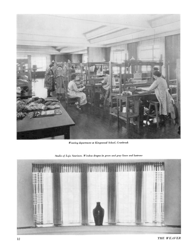 The Weavings of Loja Saarinen, Davies, Florence. Weaver, Vol. 2 No. 1 (January 1937), 7 pages. Note: PDF provided by Judith Combs. Posted September 2, 2006. SAMPLE PAGE. File size 607 KB PDF