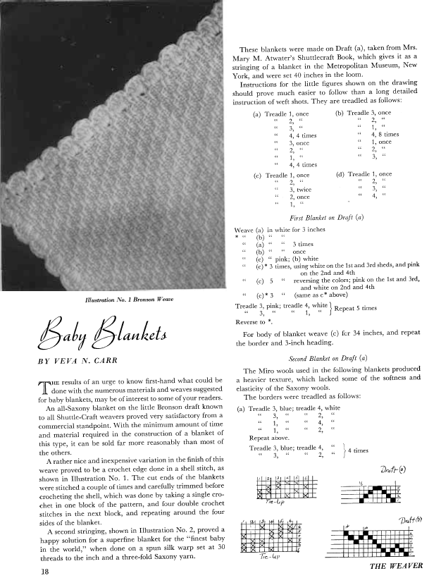 Baby Blankets, Carr, Veva N. Weaver, Vol. 2 No. 1 (January 1937), 3 pages. Note: PDF provided by Judith Combs. Posted September 2, 2006. SAMPLE PAGE. File size 330 KB PDF