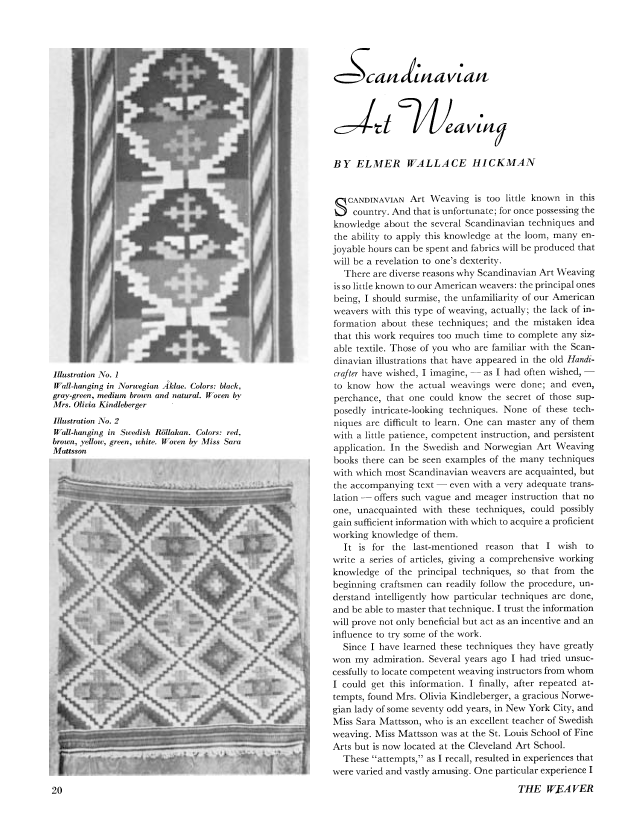 Scandinavian Art Weaving, Hickman, Elmer Wallace. Weaver, Vol. 2 No. 1 (January 1937), 6 pages. Note: PDF provided by Judith Combs. Posted September 2, 2006. SAMPLE PAGE. File size 645 KB PDF