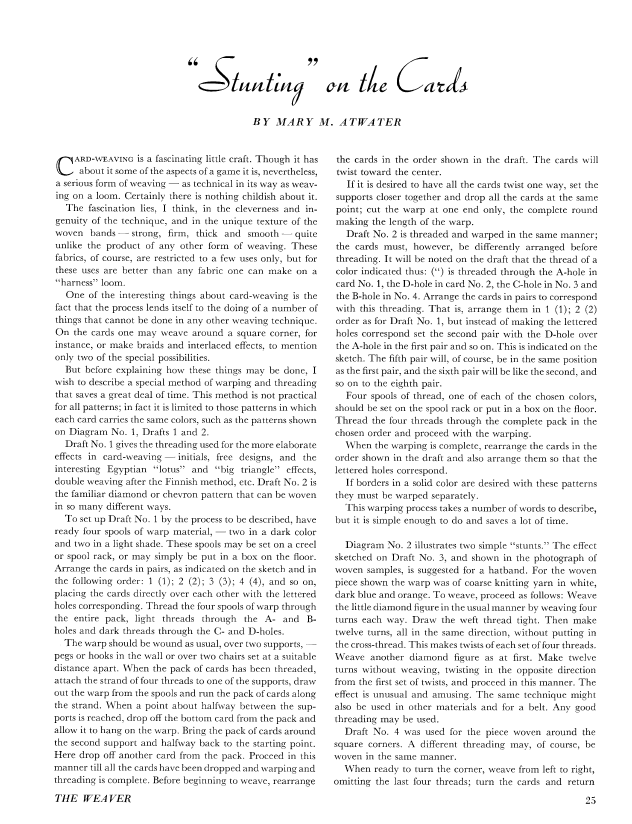 Stunting on the Cards, Atwater, Mary M. Weaver, Vol. 2 No. 1 (January 1937), 6 pages. Note: PDF provided by Judith Combs. Posted September 2, 2006. SAMPLE PAGE. File size 495 KB PDF
