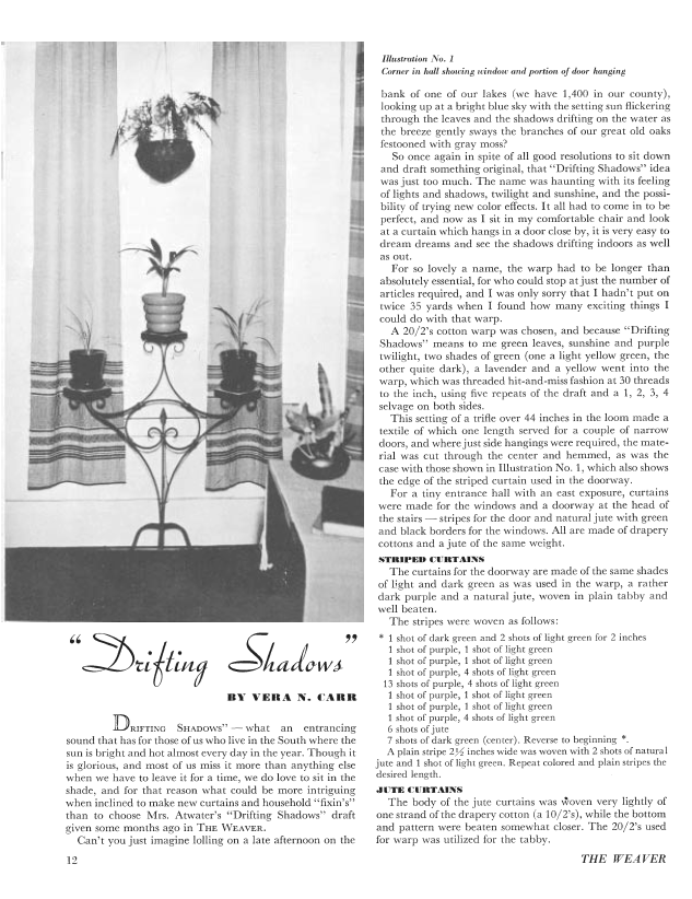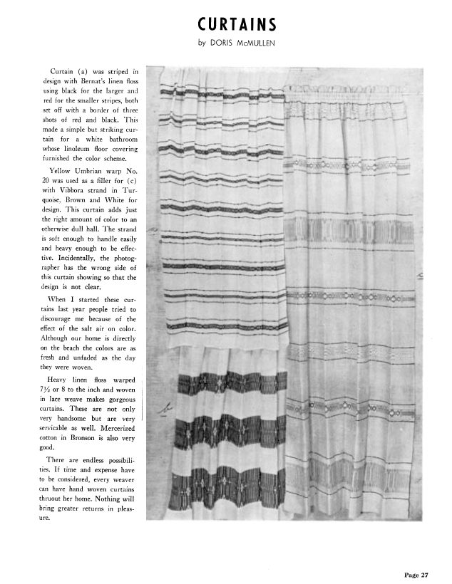 Curtains, McMullen, Doris. Weaver, Vol. 5 No. 4 (October-November 1940), 1 page. Note: PDF provided by Judith Combs. Posted September 2, 2006. SAMPLE PAGE. File size 74 KB PDF