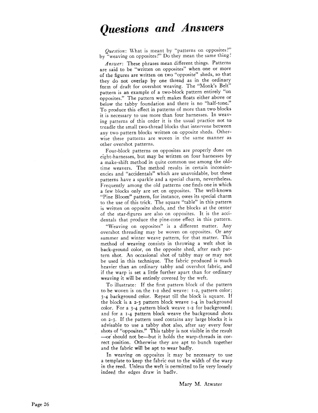 Questions and Answers - Opposites, Atwater, Mary M. Weaver, Vol. 3 No. 2 (April 1938), 1 page. Note: PDF provided by Judith Combs. Posted September 2, 2006. SAMPLE PAGE. File size 77 KB PDF