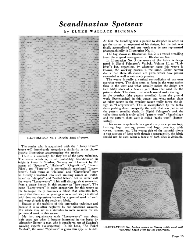 Scandinavian Spetsvav, Hickman, Elmer Wallace. Weaver, Vol. 3 No. 3 (July 1938), 4 pages. Note: PDF provided by Judith Combs. Posted September 2, 2006. SAMPLE PAGE. File size 382 KB PDF