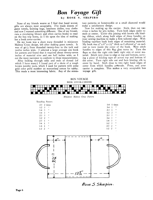 Bon Voyage Gift, Shapiro, Rose S. Weaver, Vol. 4 No. 1 (January 1939), 1 page. Note: PDF provided by Judith Combs. Posted September 2, 2006. SAMPLE PAGE. File size 68 KB PDF