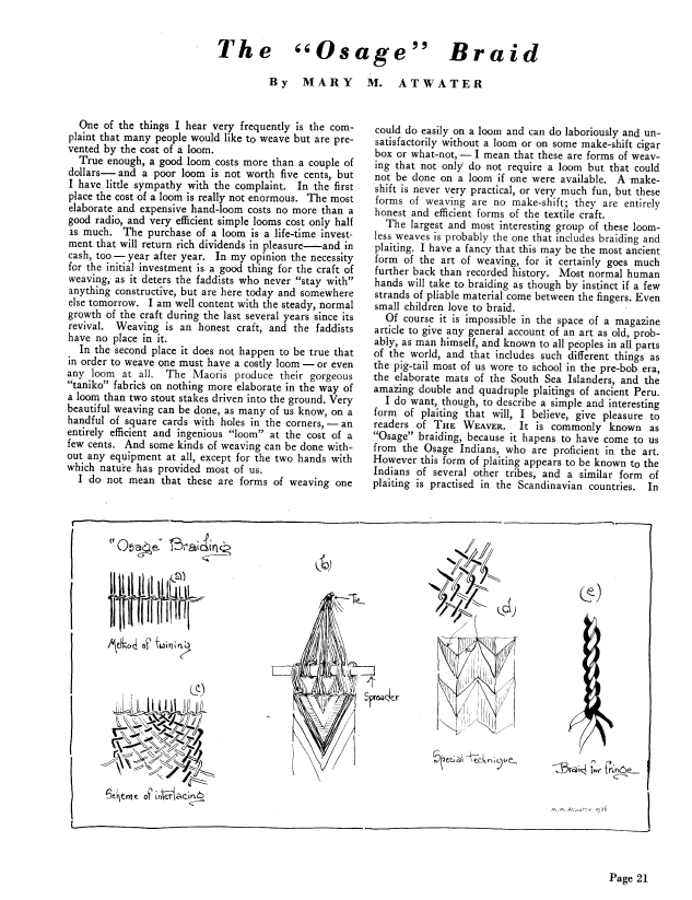 The Osage Braid, Atwater, Mary M. Weaver, Vol. 4 No. 2 (April 1939), 5 pages. Note: PDF provided by Judith Combs. Posted September 2, 2006. SAMPLE PAGE. File size 437 KB PDF