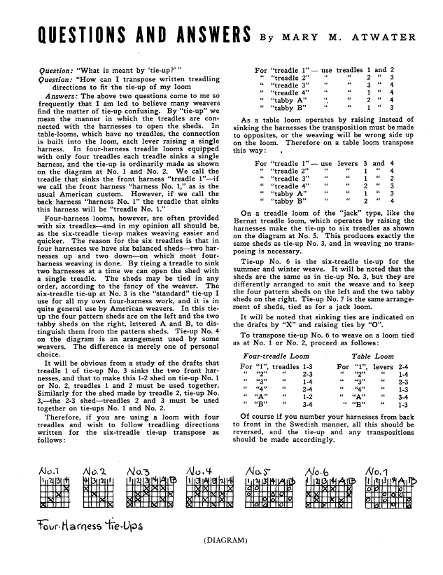 Simplifying the Tie-up, Cranmer, Marjorie. Weaver, Vol. 1 No. 3 (July 1936), 1 page. Note: PDF provided by Judith Combs. Posted September 2, 2006. SAMPLE PAGE. File size 122 KB PDF