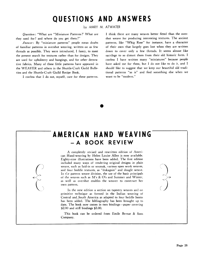 Borders, Atwater, Mary Meigs. The Weaver, Vol. 3, No. 2, 5 pages. Posted March 15, 2003. SAMPLE PAGE. File size 1MB PDF