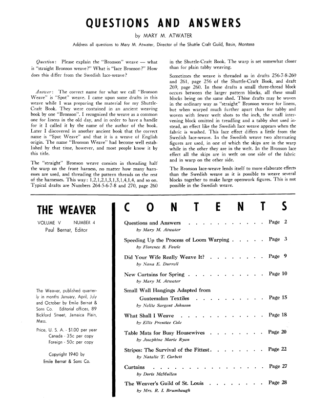 Questions and Answers, Atwater, Mary M. Weaver, Vol. 5 No. 1 (January-February 1940), 1 page. Note: PDF provided by Judith Combs. Posted September 2, 2006. SAMPLE PAGE. File size 58 KB PDF
