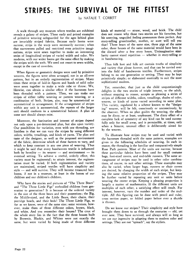 Stripes: The Survival of the Fittest, Corbett, Natalie. Weaver, Vol. 5 No. 4 (October-November 1940), 5 pages. Note: PDF provided by Judith Combs. Posted September 2, 2006. SAMPLE PAGE. File size 424 KB PDF
