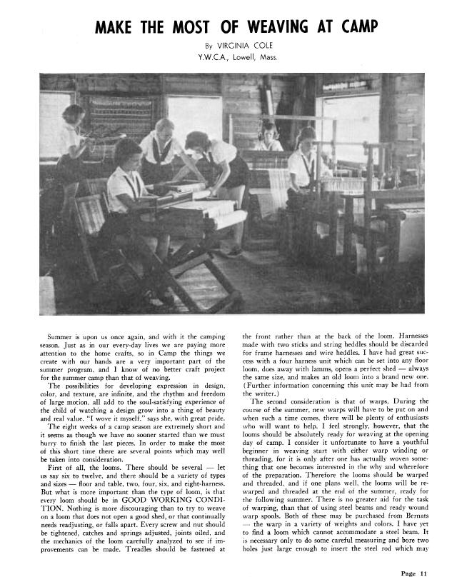 Make the Most of Weaving at Camp, Cole, Virginia. Weaver, Vol. 6 No. 3 (July-August 1941), 2 pages. Note: PDF provided by Judith Combs. Posted September 2, 2006. SAMPLE PAGE. File size 204 KB PDF