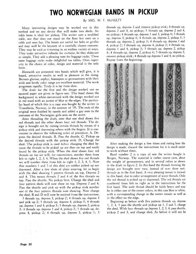 Two Norwegian Bands in Pickup, McNulty, Mrs. W.F. Weaver, Vol. 7 No. 2 (July 1942), 2 pages. Note: PDF provided by Judith Combs. Posted September 2, 2006. SAMPLE PAGE. File size 236 KB PDF