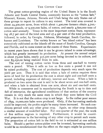 Cotton Crop, ---. Workers of the Nation: An Industrial Encyclopedia of the Occupations of the American People, 1906, 1 page. Posted March 8, 2004. SAMPLE PAGE. File size 456 KB PDF