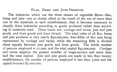 Flax, Hemp, and Jute Products, ---. Workers of the Nation: An Industrial Encyclopedia of the Occupations of the American People, 1906, 1 page. Posted March 5, 2004. SAMPLE PAGE. File size 416 KB PDF