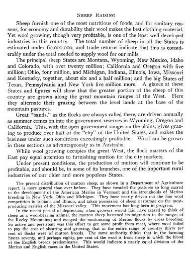 Sheep Raising, ---. Workers of the Nation: An Industrial Encyclopedia of the Occupations of the American People, 1906, 1 page. Posted March 8, 2004. SAMPLE PAGE. File size 456 KB PDF