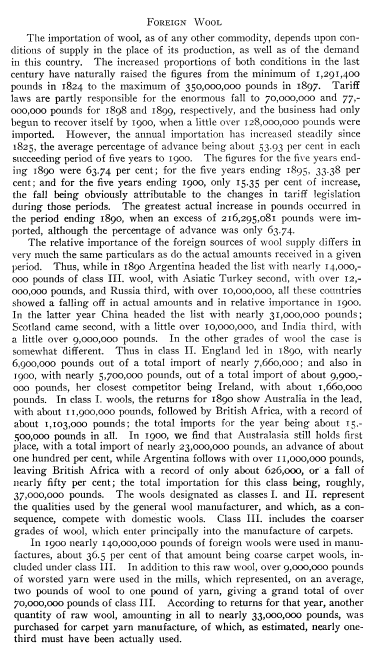 Foreign Wool, ---. Workers of the Nation: An Industrial Encyclopedia of the Occupations of the American People, 1906, 1 page. Posted March 8, 2004. SAMPLE PAGE. File size 476 KB PDF