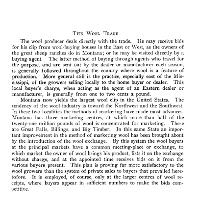 Wool Trade, ---. Workers of the Nation: An Industrial Encyclopedia of the Occupations of the American People, 1906, 1 page. Posted March 8, 2004. SAMPLE PAGE. File size 432 KB PDF