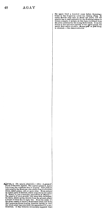 Agave, ---. Zell's Encyclopedia, 1876, 1 page. Posted April 11, 2004. SAMPLE PAGE. File size 412 KB PDF
