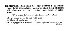 Buckram, ---. Zell's Encyclopedia, 1876, 1 page. Posted April 11, 2004. SAMPLE PAGE. File size 396 KB PDF