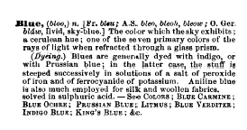 Blue, ---. Zell's Encyclopedia, 1876, 1 page. Posted April 12, 2004. SAMPLE PAGE. File size 400 KB PDF