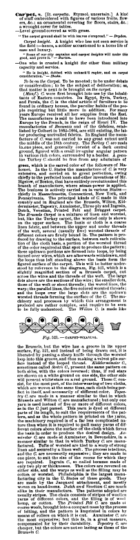 Carpet, ---. Zell's Encyclopedia, 1876, 1 page. Posted April 17, 2004. SAMPLE PAGE. File size 476 KB PDF