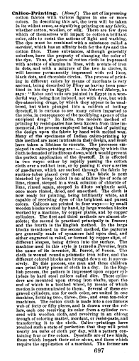 Calico Printing, ---. Zell's Encyclopedia, 1876, 2 pages. Posted April 17, 2004. SAMPLE PAGE. File size 508 KB PDF