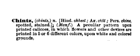 Chintz, ---. Zell's Encyclopedia, 1876, 1 page. Posted April 17, 2004. SAMPLE PAGE. File size 396 KB PDF