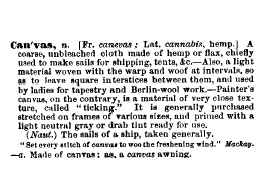 Canvas, ---. Zell's Encyclopedia, 1876, 1 page. Posted April 22, 2004. SAMPLE PAGE. File size 400 KB PDF