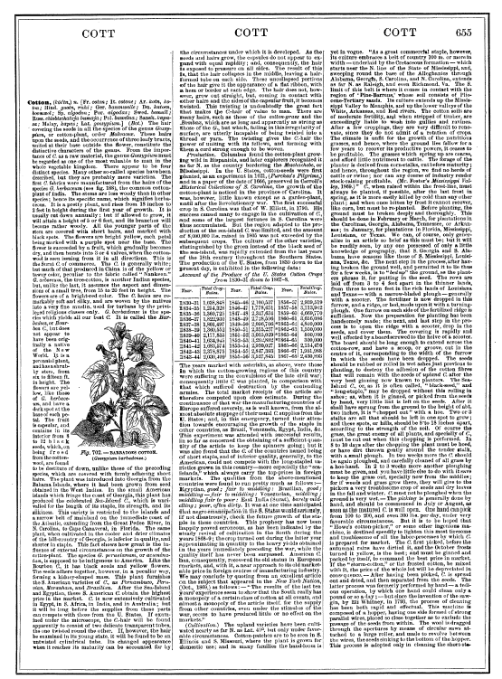 Cotton, ---. Zell's Encyclopedia, 1876, 2 pages. Posted January 9, 2004. SAMPLE PAGE. File size 960 KB PDF
