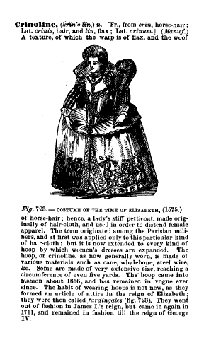 Crinoline, ---. Zell's Encyclopedia, 1876, 1 page. Posted April 22, 2004. SAMPLE PAGE. File size 420 KB PDF