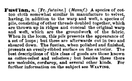 Fustian, ---. Zell's Encyclopedia, 1876, 1 page. Posted April 23, 2004. SAMPLE PAGE. File size 400 KB PDF