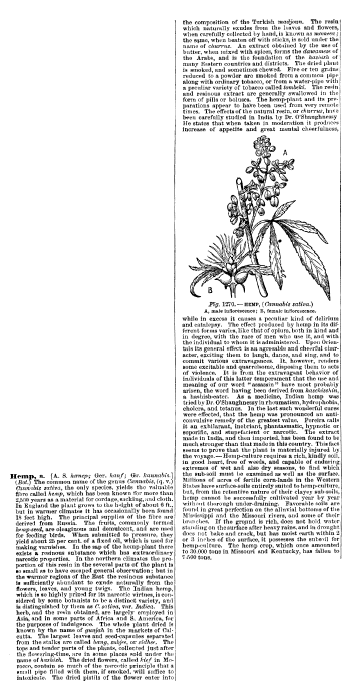 Hemp, ---. Zell's Encyclopedia, 1876, 1 page. Posted January 9, 2004. SAMPLE PAGE. File size 504 KB PDF
