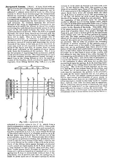 Jacquard Loom, ---. Zell's Encyclopedia, 1876, 1 page. Posted January 9, 2004. SAMPLE PAGE. File size 496 KB PDF