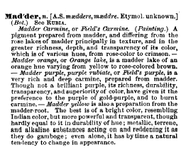 Madder, ---. Zell's Encyclopedia, 1876, 1 page. Posted April 23, 2004. SAMPLE PAGE. File size 408 KB PDF