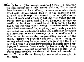 Mangle, ---. Zell's Encyclopedia, 1876, 1 page. Posted April 23, 2004. SAMPLE PAGE. File size 404 KB PDF