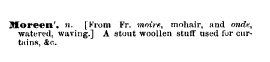 Moire, ---. Zell's Encyclopedia, 1876, 1 page. Posted April 23, 2004. SAMPLE PAGE. File size 404 KB PDF