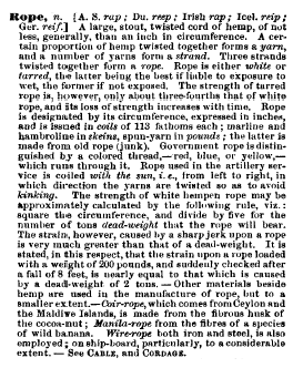 Rope, ---. Zell's Encyclopedia, 1876, 1 page. Posted April 24, 2004. SAMPLE PAGE. File size 416 KB PDF
