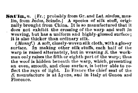 Satin, ---. Zell's Encyclopedia, 1876, 1 page. Posted April 24, 2004. SAMPLE PAGE. File size 400 KB PDF
