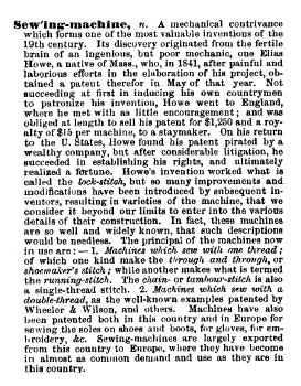 Sewing Machine, ---. Zell's Encyclopedia, 1876, 1 page. Posted April 24, 2004. SAMPLE PAGE. File size 416 KB PDF