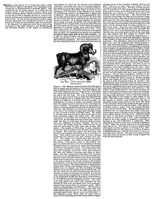 Sheep, ---. Zell's Encyclopedia, 1876, 1 page. Posted August 13, 2003. SAMPLE PAGE. File size 580 KB PDF