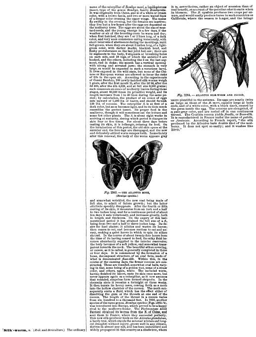 Silk-Worm, ---. Zell's Encyclopedia, 1876, 1 page. Posted August 13, 2003. SAMPLE PAGE. File size 524 KB PDF