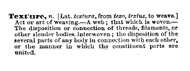 Texture, ---. Zell's Encyclopedia, 1876, 1 page. Posted April 25, 2004. SAMPLE PAGE. File size 396 KB PDF