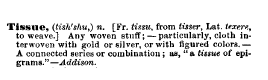 Tissue, ---. Zell's Encyclopedia, 1876, 1 page. Posted April 25, 2004. SAMPLE PAGE. File size 396 KB PDF