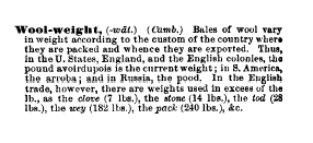 Wool-Weight, ---. Zell's Encyclopedia, 1876, 1 page. Posted April 25, 2004. SAMPLE PAGE. File size 396 KB PDF
