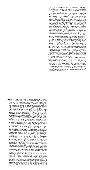 Wool, ---. Zell's Encyclopedia, 1876, 1 page. Posted January 9, 2004. SAMPLE PAGE. File size 460 KB PDF