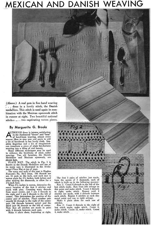 Mexican and Danish Weaving, Brooks, Marguerite G. 2 pages. Posted November 18, 2002. SAMPLE PAGE. File size 744 KB PDF
