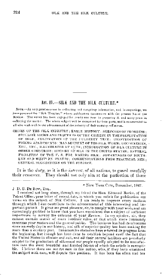 Silk and Silk Culture, De Bow, J. D. B. 1847, 23 pages. CD (HWDA12). Posted March 3, 2005. SAMPLE PAGE. File size 3 MB PDF