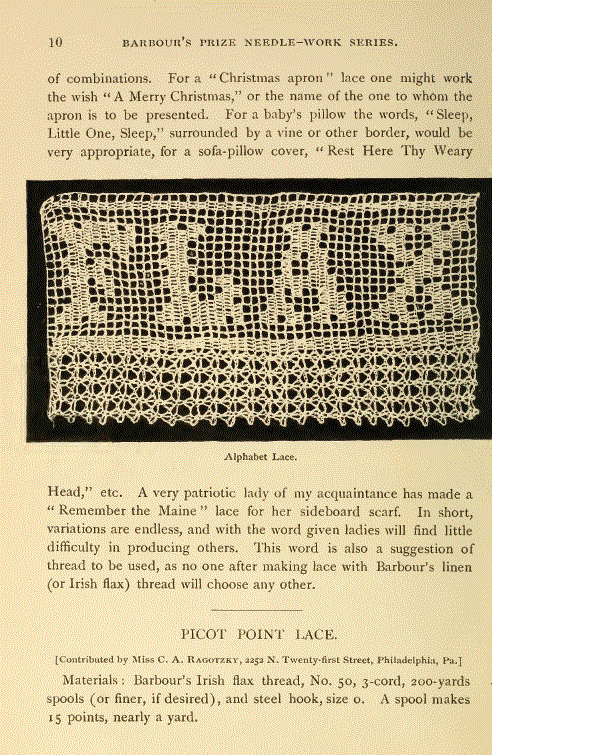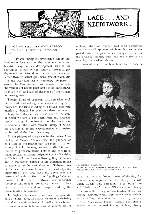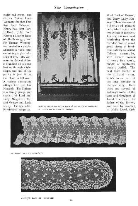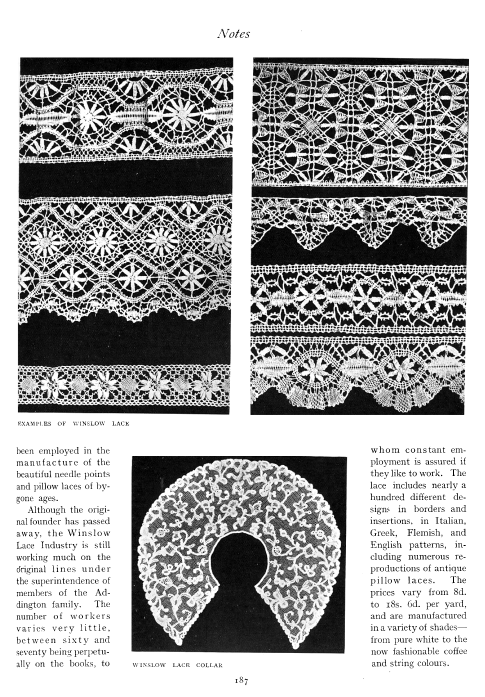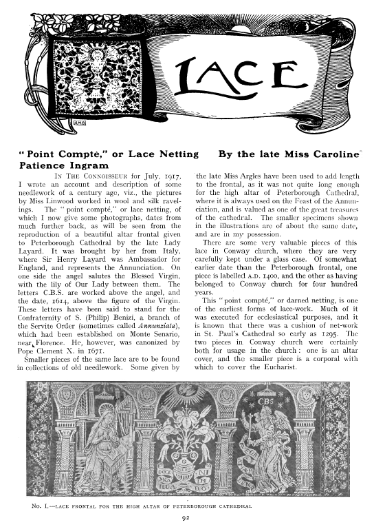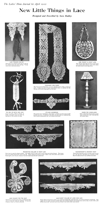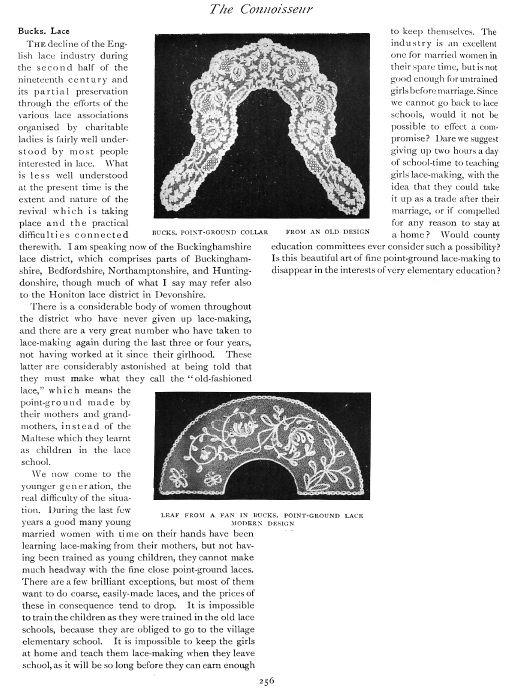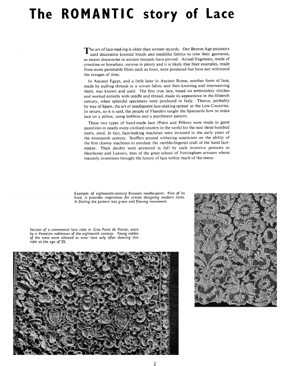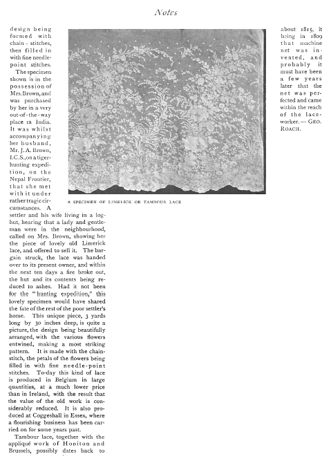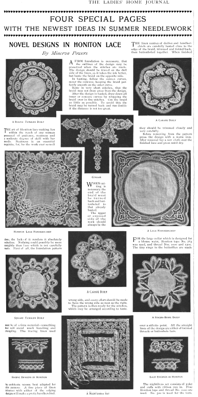 Lace in America, Powys, Marian. Arts and Decoration, Vol. 12 (1919-1920), 2 pages. Note: Reduced to 85% to fit on page. Posted June 18, 2004. CD (HWDA10). SAMPLE PAGE. File size 912 KB PDF