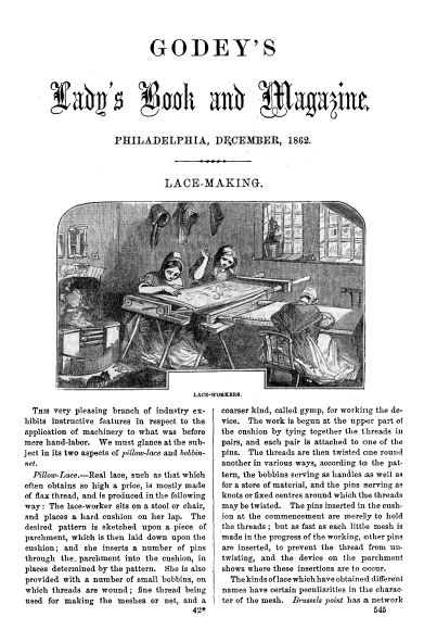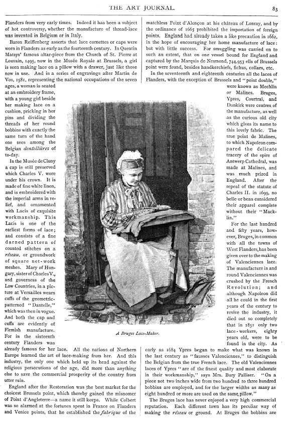 Lace School at Bruges, Kingsley, Rose G. . Art Journal, Vol. 50 (1887), 4 pages. Posted November 11, 2003. CD (LDA04). SAMPLE PAGE. File size 1 MB PDF