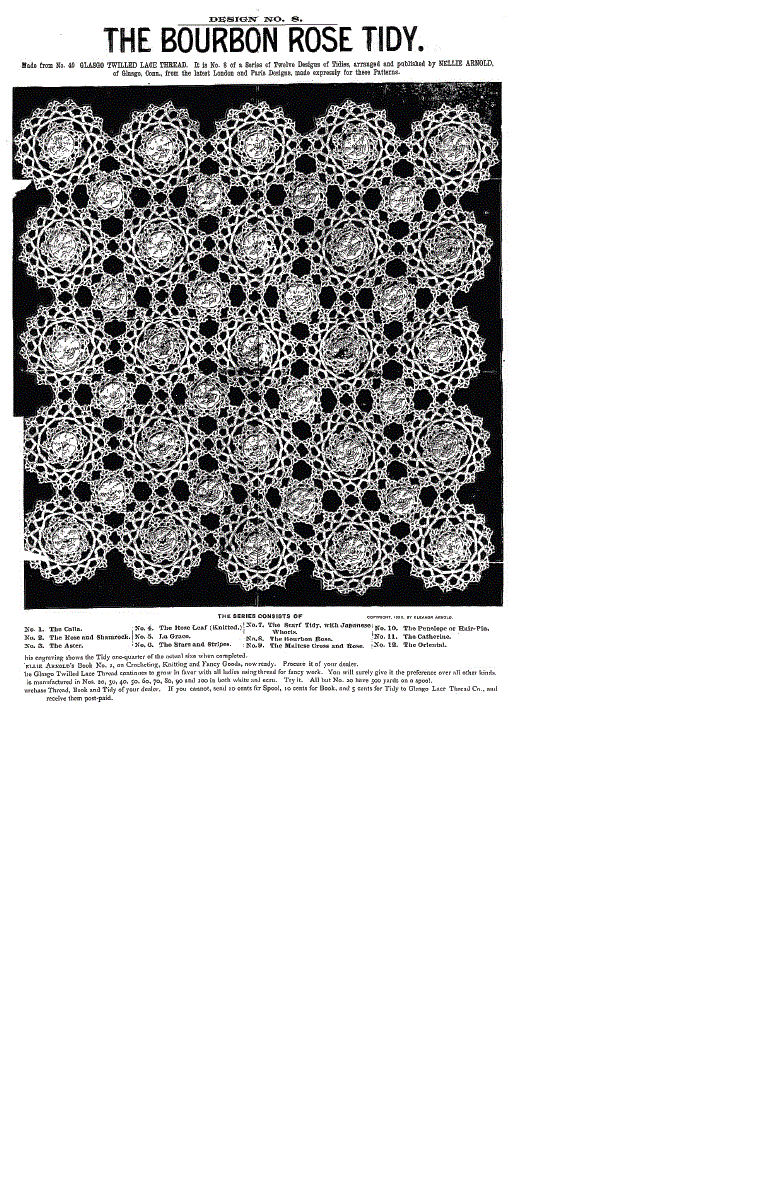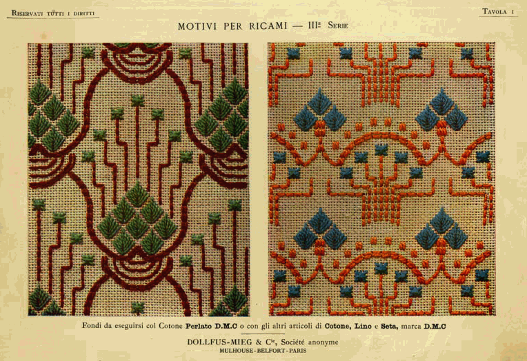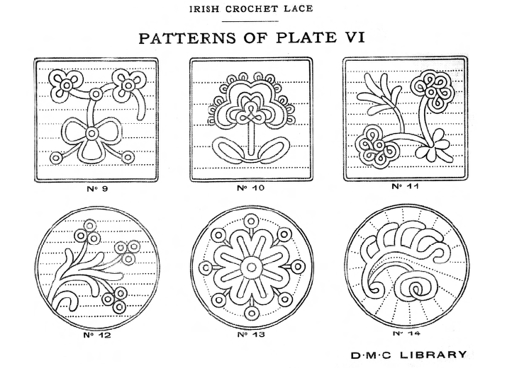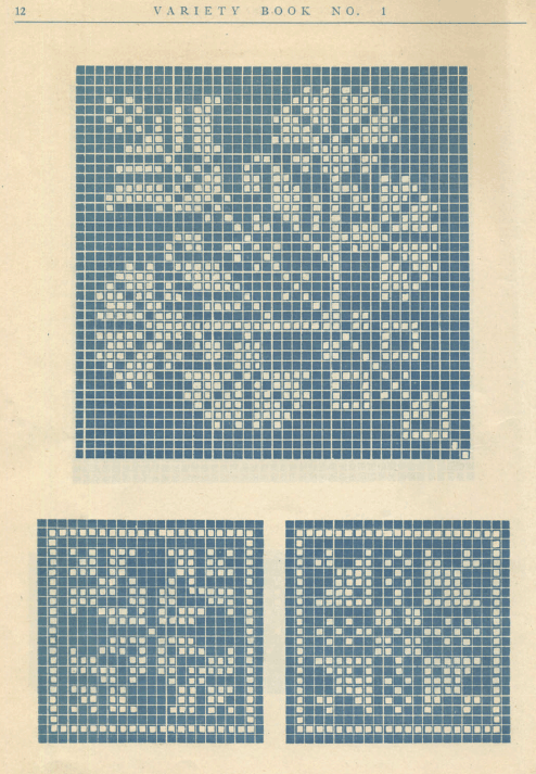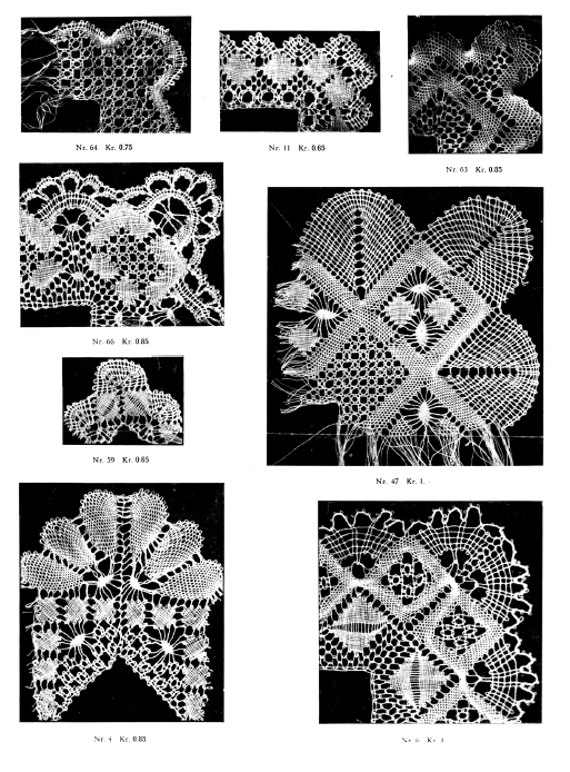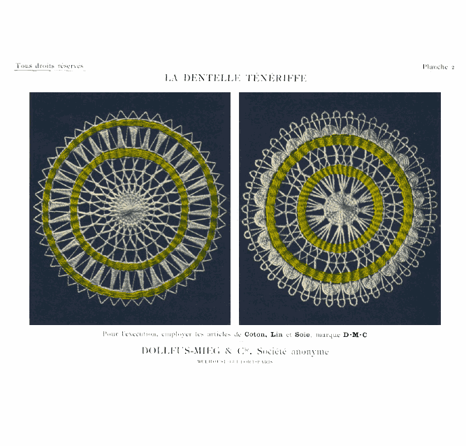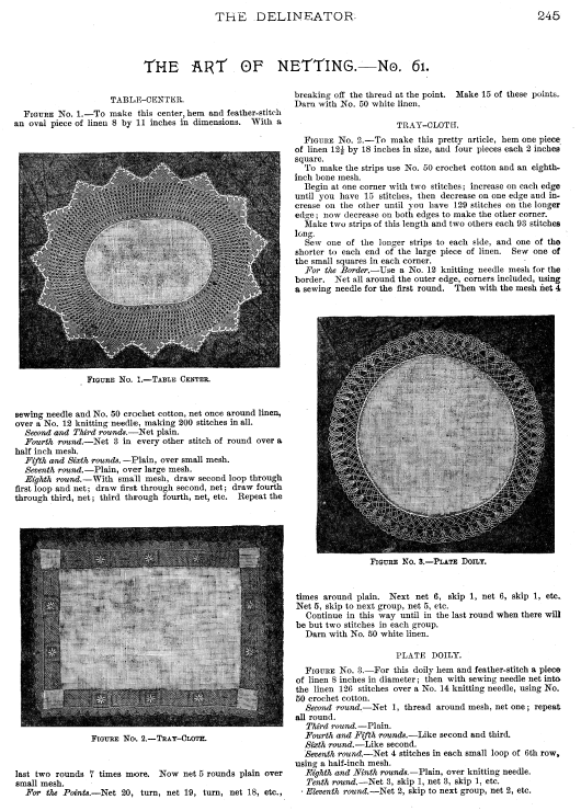 Dessins nouveaux de Filet Brodé [New Designs for Filet Lace], P.-Verness, M. Appleton's Encyclopedia, Vol. 26 (December 1909), 5 pages. Posted June 16, 2005. SAMPLE PAGE. File size 3 MB PDF