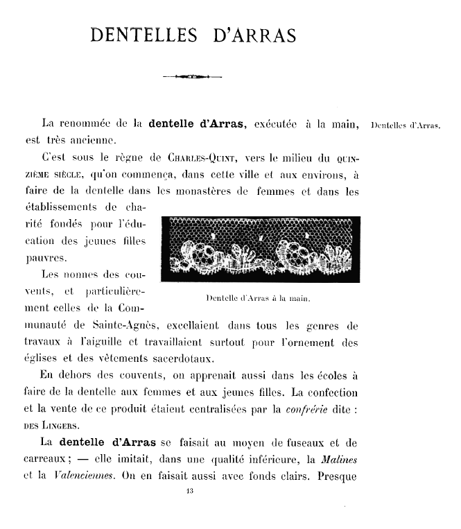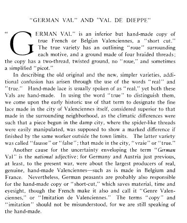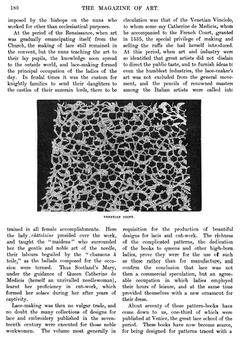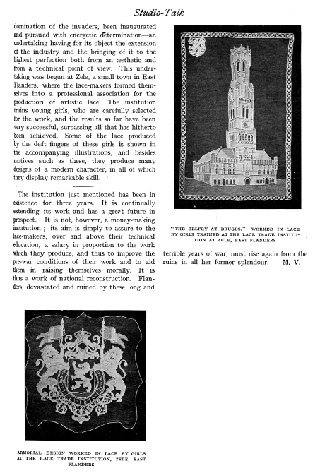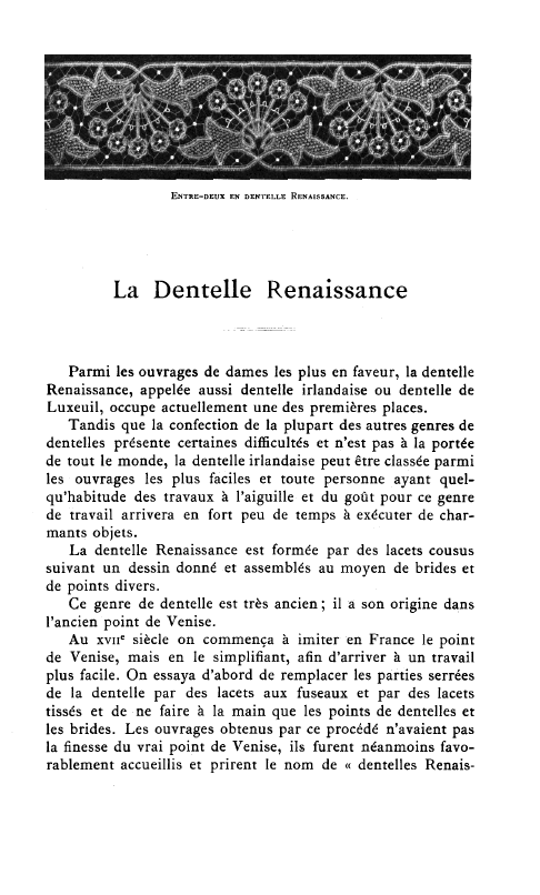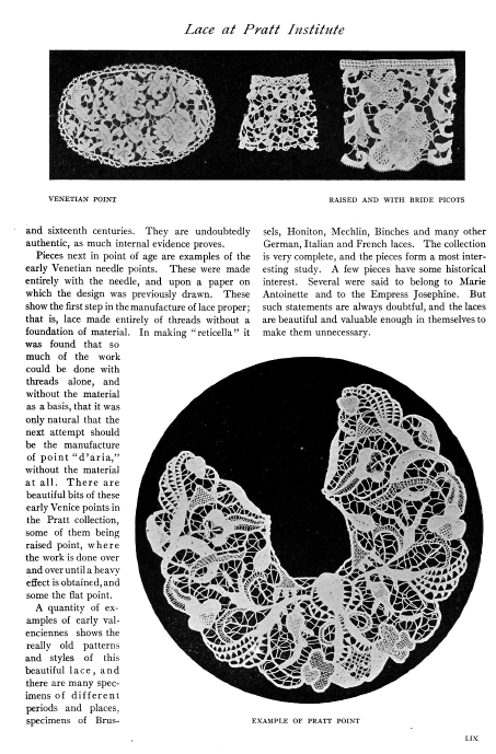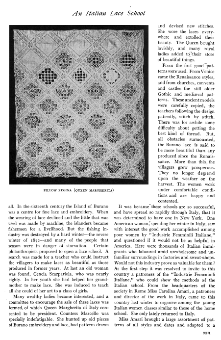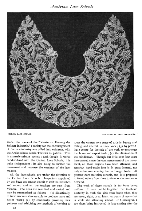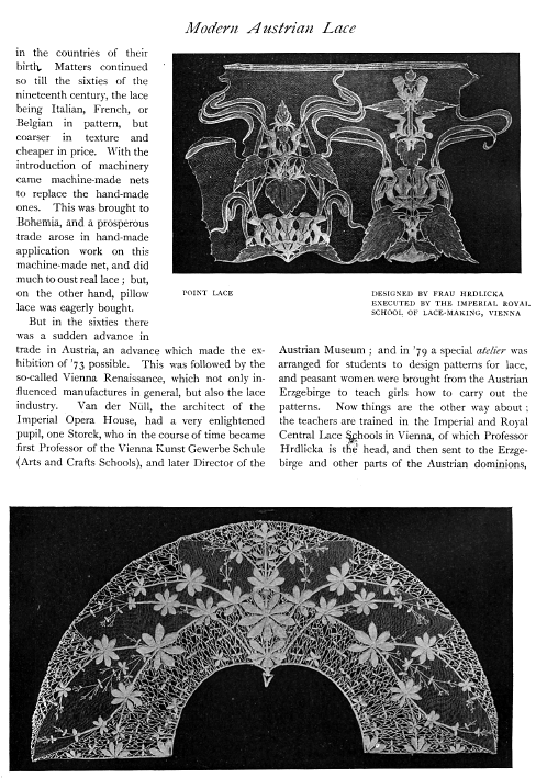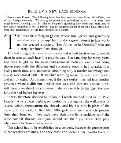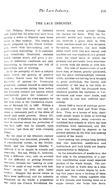 L'École de Dentelles de Vienne [The Lace School at Vienna], Verneuil, M. P. Appleton's Encyclopedia, Vol. 14 (May 1903), 8 pages. Posted June 16, 2005. SAMPLE PAGE. File size 2.5 MB PDF